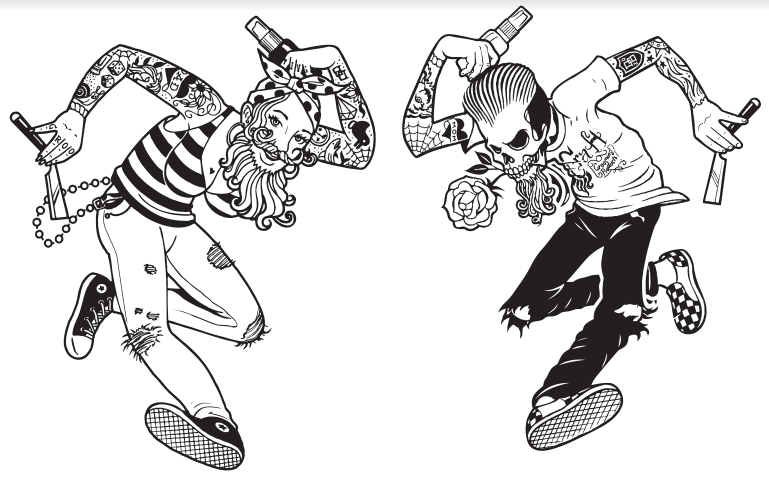 Surfer Tiki in black and white shirts